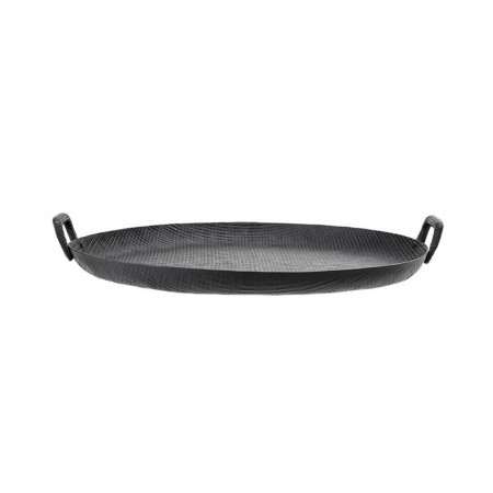 Plateau rond en aluminium noir avec 2 poignées de la marque Bloomingville. N'est pas adapté pour le lave-vaisselle, ni le four et ni le micro-ondes.