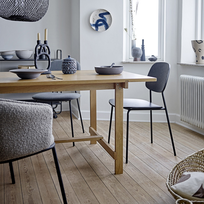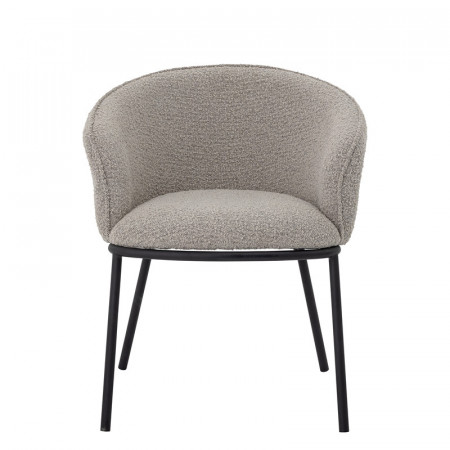 Sobre, épurée et franchement design, la chaise de salle à manger design avec accoudoirs Cortone de la marque Bloomingville est parfaite pour illuminer la décoration de intérieur. Chaise de salle à manger avec piétement en métal noir et assise en tissu laine bouclée gris clair.