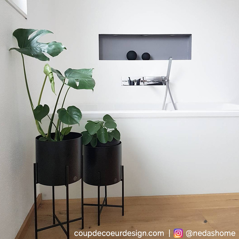 Ceux qui ne possèdent pas de jardin, aiment eux aussi, profiter d’un peu de verdure au quotidien grâce aux pots de fleurs. Ces pots de fleurs sur pieds en métal noir ont été dessinés par la marque Hubsch.