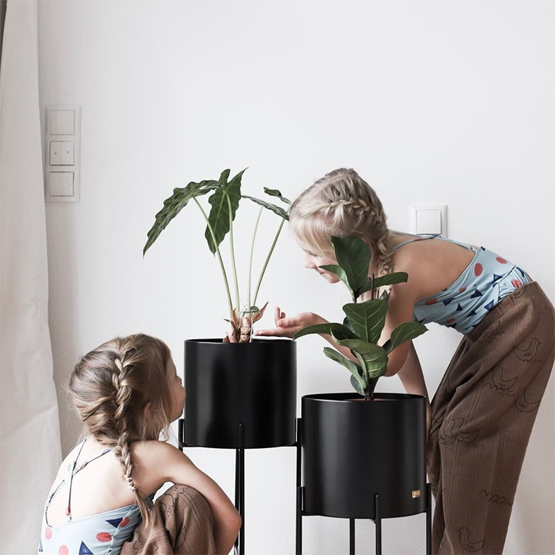 Pots de fleurs sur pieds métal noir design Hubsch - Pétale