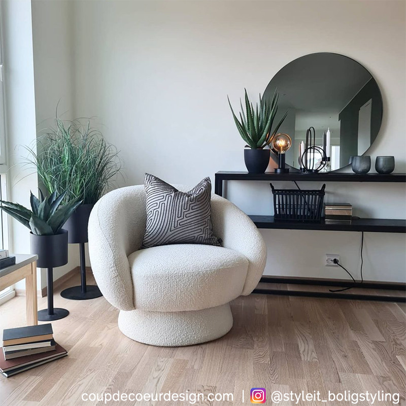 Comme son nom l’indique, le fauteuil crème en laine bouclée TED dessiné par Bloomingville propose une matière noble et rare pour une assise du quotidien. Pour autant, ce fauteuil design de couleur blanc crème reste particulièrement confortable, notamment grâce à une ligne arrondie et enveloppante. Il pourra, bien sûr, trouver sa place dans le salon, mais également dans les pièces de votre maison où vous souhaitez installer un petit coin bien-être, comme une chambre à coucher ou une entrée.
