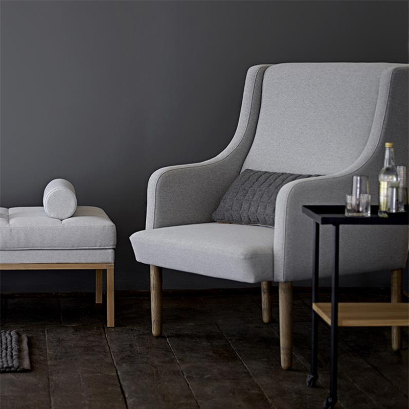 Détendez-vous dans ce fauteuil tout en bouquinant votre livre préféré. Provenant des pays nordiques, ce fauteuil confortable nous séduit par sa silhouette scandinave et sa finition élégante. Il est recouvert d'un tissu gris clair, une couleur sobre qui sera facilement s'associer à tous les intérieurs. Ses pieds ronds sont en chêne fumé nous rappel la nature. Ce fauteuil est doté d'un haut dossier pour un meilleur maintien de la tête. Sa largeur vous permettra de vous y lover aisément enveloppé d'un plaid et entouré de coussins. Pour créer un coin cosy, placez simplement sur le fauteuil une fourrure. Vos hivers seront chaleureux et chauds...