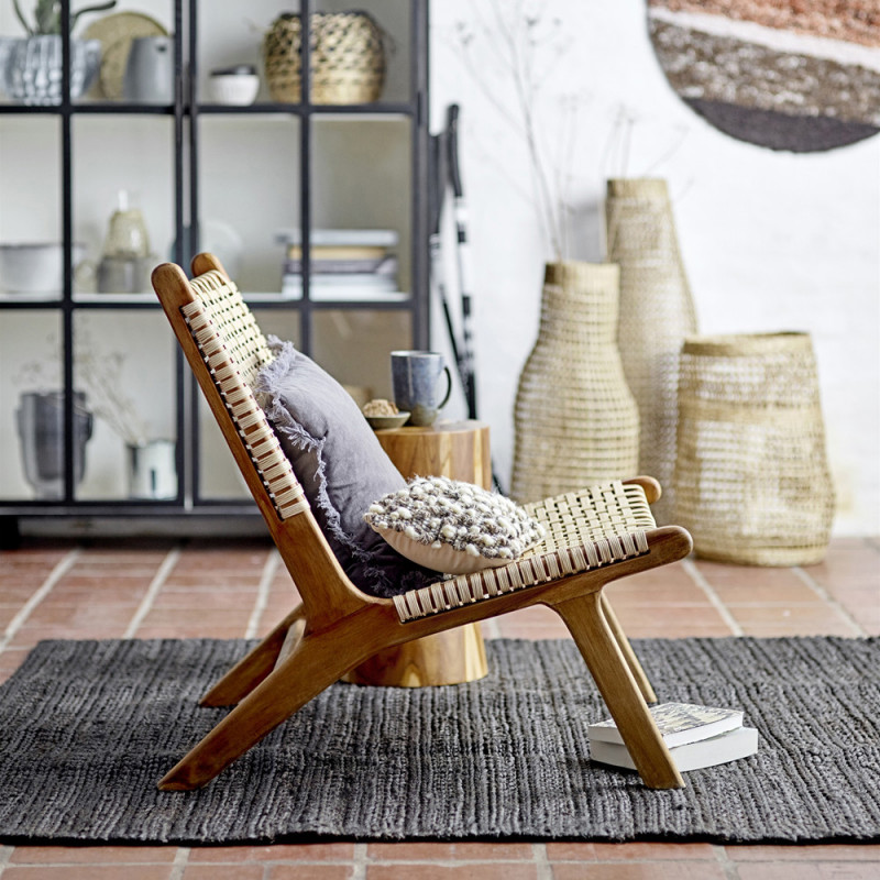 Le fauteuil bas en rotin et bois de teck CASI de Bloomingville convient à tous les espaces, notamment si vous appréciez accueillir proches et famille autour d’une table basse. Pour remplacer vos habituels poufs d’assise, ce fauteuil maintient parfaitement le dos grâce à un dossier haut en rotin. La stabilité est assurée par le choix d’un bois noble, le teck, réputé pour sa solidité et son élégance.