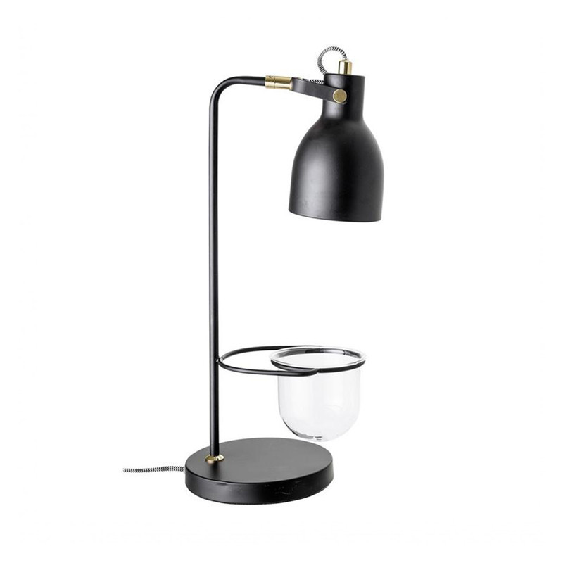 Les plantes s'invitent là où on ne les attend pas ! La lampe noire de la marque Bloomingville nous surprend avec son petit pot en verre rattaché à la lampe pour y placer une petite plante décorative. La lampe est en métal noir avec des détails dorés.