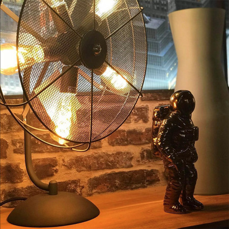 Coup de Cœur pour cette lampe industrielle au look ventilateur ! Son originalité nous charme au premier regard. Un design qui nous rappel les lofts new yorkais. La lampe style industriel en métal noir est composée de 5 ampoules (non fournies) pour une lumière chaleureuse.