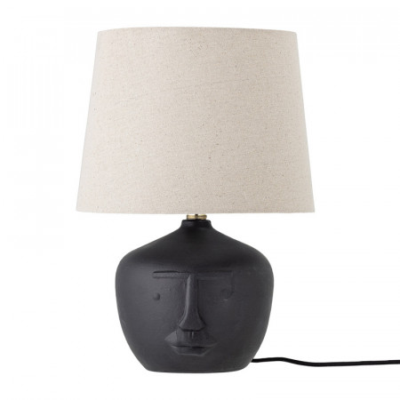 Une lampe noire design avec un abat-jour en lin de couleur blanc parfaite pour compléter votre décoration au style nature, style arty.... Elle apportera votre touche artistique dans votre intérieur grâce à son pied en terre cuite noire décoré par les contours d'un visage.