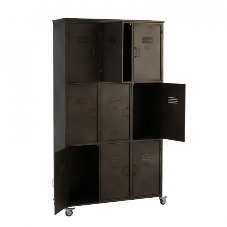 Une armoire métallique qui joue à 100% l’effet casier pour un côté chic et décalé ! Placez ce meuble d'atelier dans l'entrée, le bureau, dans la chambre d'enfant, le salon et osez le placer dans votre cuisine. Le meuble métalique comporte 9 casiers en métal de couleur gris anthracite. Ses roulettes vous permettront de le déplacer facilement.