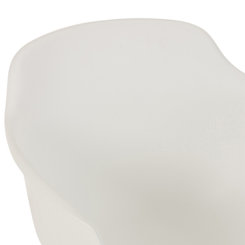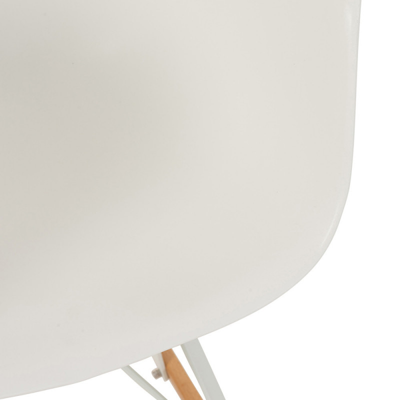 L’assise moulée de cette chaise à bascule blanche est composée de polypropylène, un matériau robuste et durable. Seule touche de « couleur » : un piétement en métal blanc qui se termine par des pieds arrondis en bois naturel. Cette touche boisée pourra notamment s’accorder aux autres meubles de la maison.