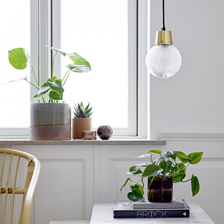 Une lampe suspendue fine et épurée idéale pour compléter votre décoration au style art déco. N'hésitez pas à multiplier les sources lumineuses pour apporter plus de chaleur et de convivialité dans la pièce. La lampe suspendue de la marque Bloomingville a une douille en métal finition dorée et un diffuseur sphérique en verre transparent en relief.