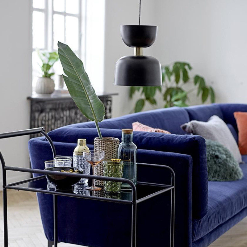 Un modèle de lampe suspendue idéal pour éclairer vos soirées en cuisine. Une suspension design de la marque Bloomingville avec abat jour en métal noir et finitions dorées.