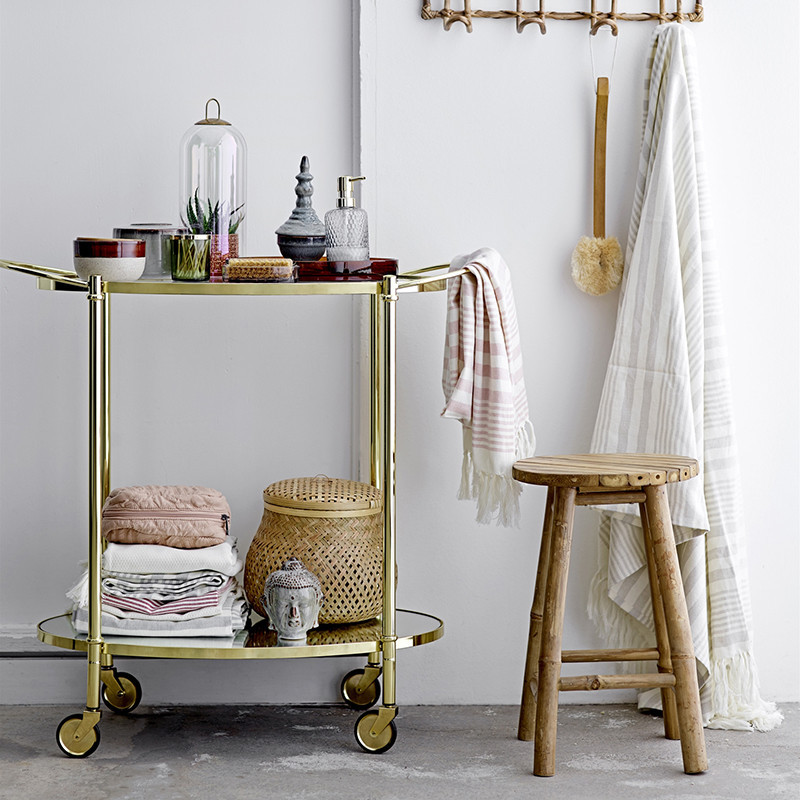 Un moyen astucieux pour enjoliver le quotidien. Il peut être un tabouret pratique aujourd'hui pour devenir demain une petite table d'appoint informelle. Tabouret d'extérieur de la marque Bloomingville en bambou naturel.