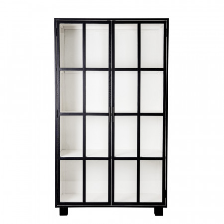 Le meuble vitrine noir et blanc 2 portes vitrées VERI de Bloomingville apporte une petite touche très chic à un salon ou une salle à manger. Dans une ligne classique, ce meuble vitrine se distingue toutefois par un intérieur entièrement blanc pour trancher avec la profondeur du noir qui habille les portes. Ainsi, ce meuble de rangement design permet de mettre en valeur vos objets déco comme vos cadres photo.